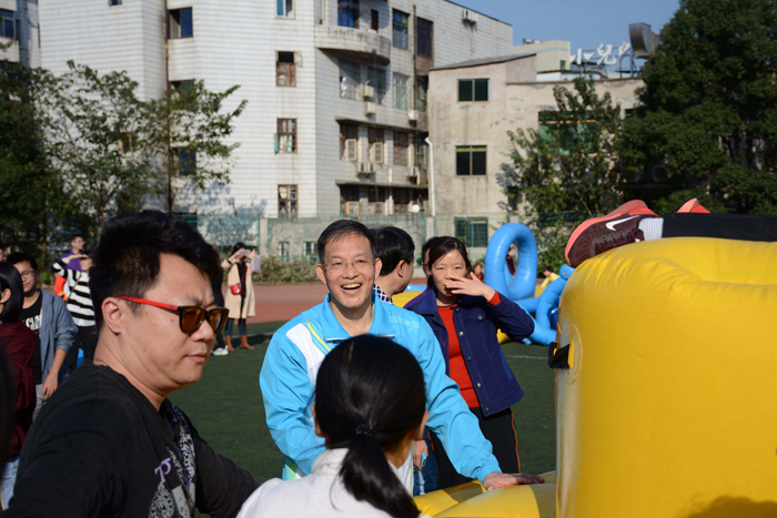比赛时,有的运动员摔倒了,迅速爬起来加入队伍完成全程,体现了积极参与和顽强的精神;赛程中,有的运动员鱼跃舒展,还有的一字跨栏….帅气身姿充满青春活力;运动场上年龄稍长的教职工精神焕发,积极参加各个项目,雄心不减当年。运动会集竞技和趣味为一体,易学、健身,参与面广,有利于教职工增强体质、增进了解,培养团队合作精神,充满了乐趣,深受广大教职工的欢迎。在这次趣味运动会上,平时为组织运动会无法参加比赛的体育教研部老师们也组队参加了比赛,而且取得了很好的成绩。首次参加校运会的校友队也派出了代表参加比赛。